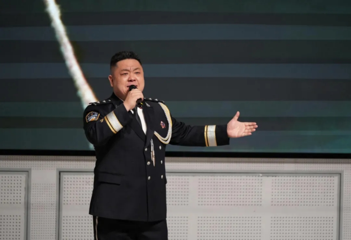 “我要白日见云霞夜里举火把,我要这朗朗乾坤下事事有王法”,正定县公安局任岩现场动情演唱了歌曲《人间道》。